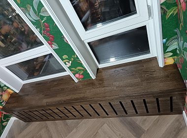Подоконники из цельноламельного дуба, толщина 20мм. Покрыты маслом с твердым воском, цвет тонировки "Теплый серый". Подоконники обладают спокойной текстурой натурального дерева, преимущественно с прямым расположением волокон. Изделия имеют простую прямоугольную форму, на свободном торце выполнена фаска 3мм.